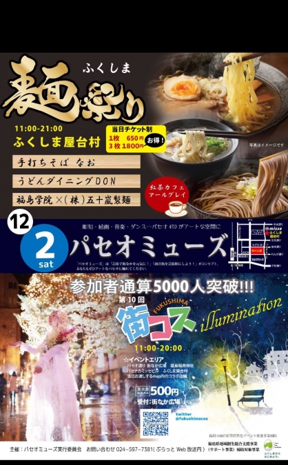 臨時休業とイベント出店のお知らせ 2017.11.27 12月2日(土)イベント出店の為、臨時休業とさせて頂きます。 それとともにご案内です。 パセオ通り ふくしま屋台村に於いて、 「ふくしま麺祭り」に出店します‼︎ 会場でお待ちしています。 時間:11:00〜21:00(売り切れ次第終了) 当店のほか、ラーメンやさん、うどんやさんが軒を連ねています。種々の麺をお楽しみください。 Category: Author:admin /blog/blog_comments/captcha /blog/blog_comments/get_token