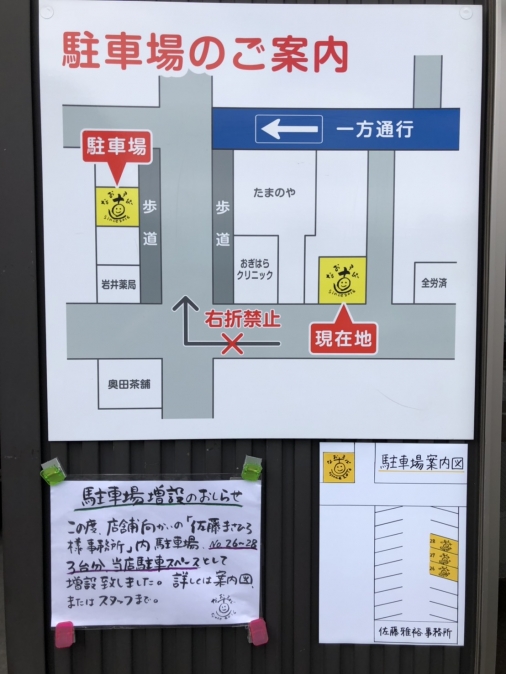 駐車場増設のご案内 2018.11.05 ご不便をおかけしてきました駐車場ですが、この度、店舗の斜め向かい「佐藤まさひろ事務所」様敷地内に3台分の駐車スペースを確保致しました。 これまでの駐車場に加え、計6台となります。 どうぞご利用ください。 Category: Author:admin /blog/blog_comments/captcha /blog/blog_comments/get_token